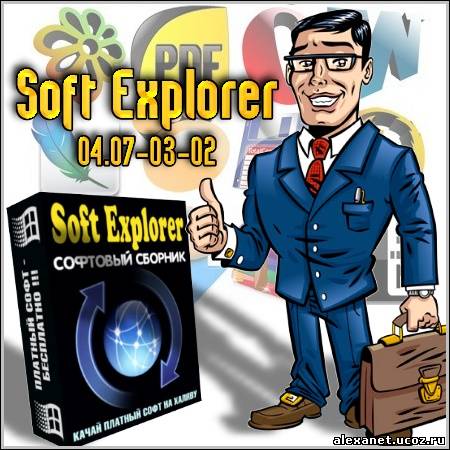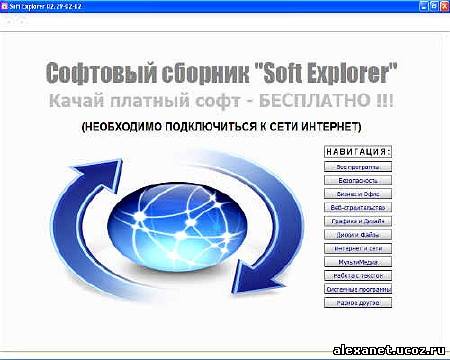 Софтовый сборник "Soft Explorer" по своей сути является навигатором по базе программного софта. Вся база разбита на несколько разделов, а именно - Безопасность, Бизнес и Офис, Графика и Дизайн, Диски и Файлы, Интернет и сети, МультиМедиа, Работа с текстом, Системные программы, Разное другое. Данный сборник включает в себя различные программы, каждая из которых размещена в соответстующем ей тематическом разделе.